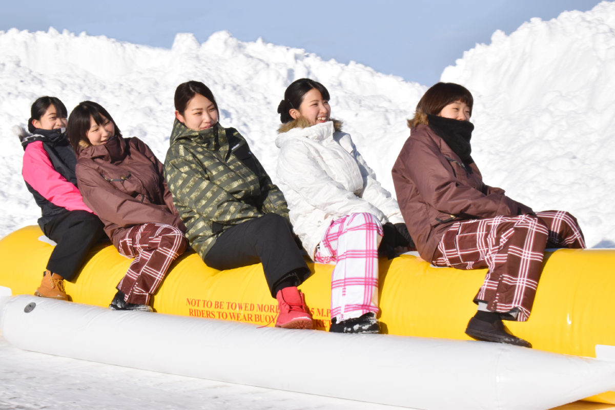 スリル満点の雪上バナナボートや、スノーチューブ♪そりの貸し出しもしています♪