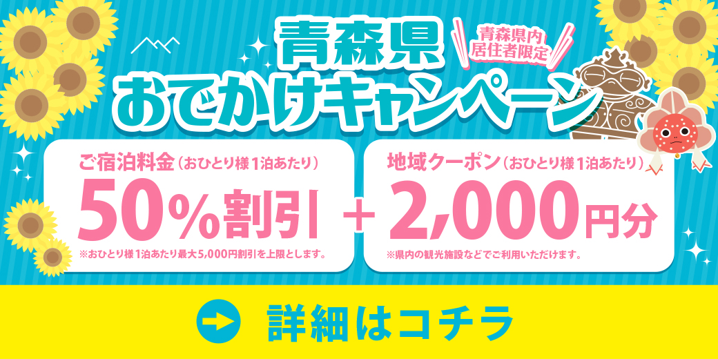 青森県民に限り、宿泊代金を表示金額より50%割引!