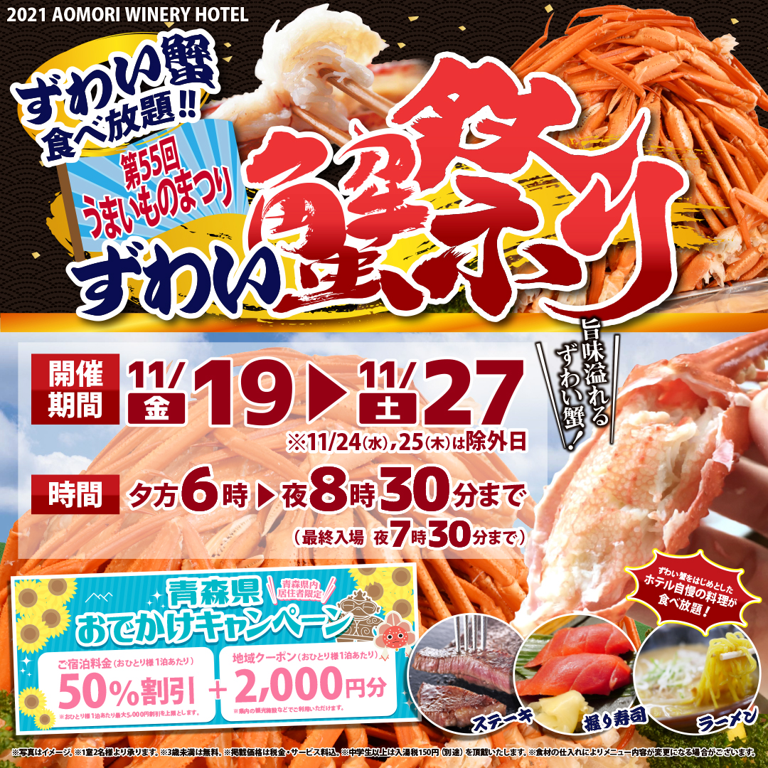 お待たせしました!青森ワイナリーホテルのうまいものまつり「ずわい蟹祭り」開催です★