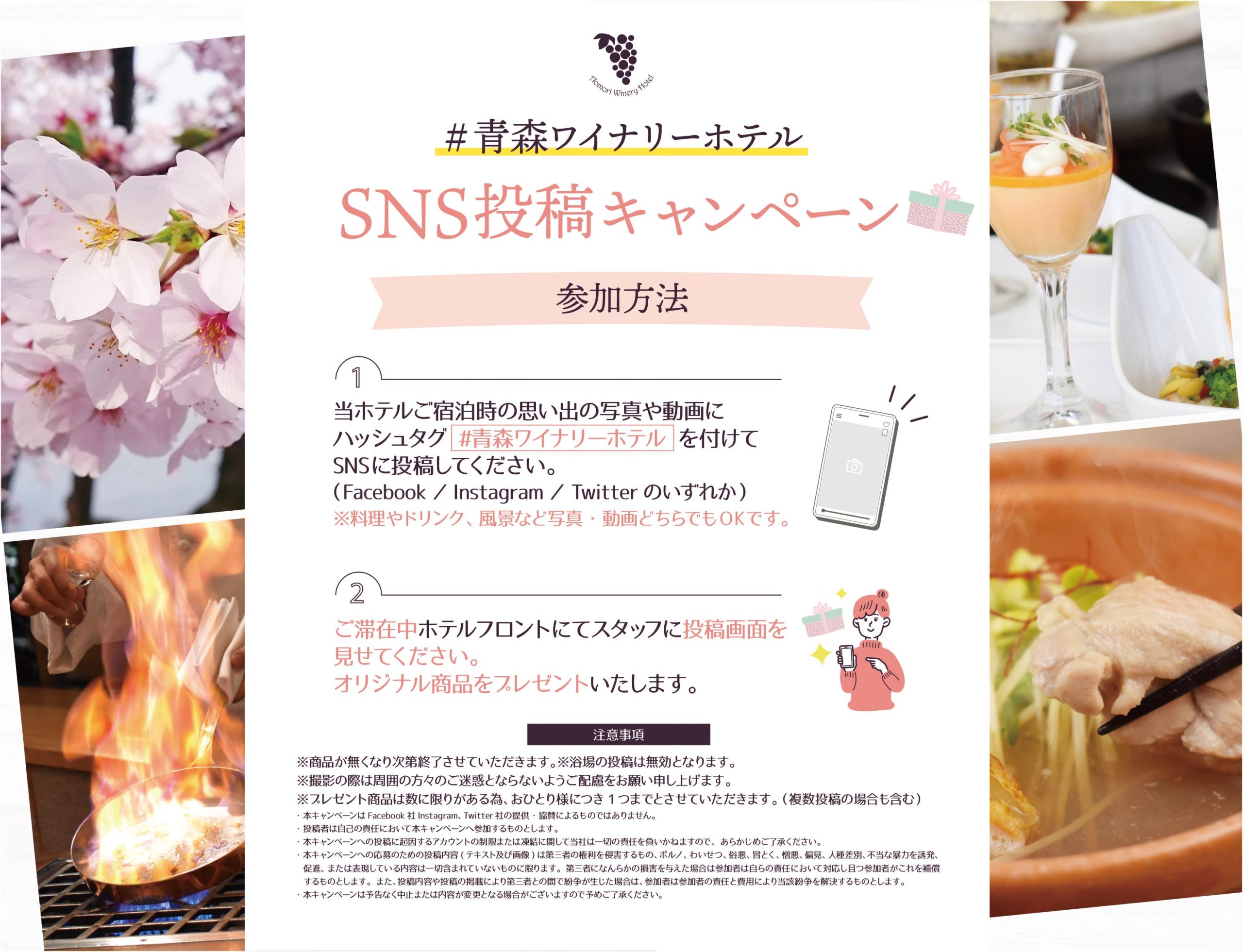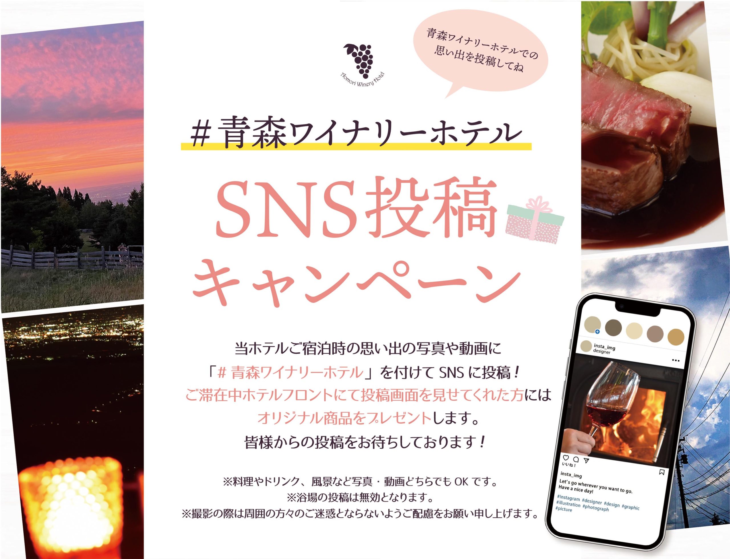青森ワイナリーホテルご宿泊時の思い出の写真や動画に「#青森ワイナリーホテル」を付けてSNSに投稿!
