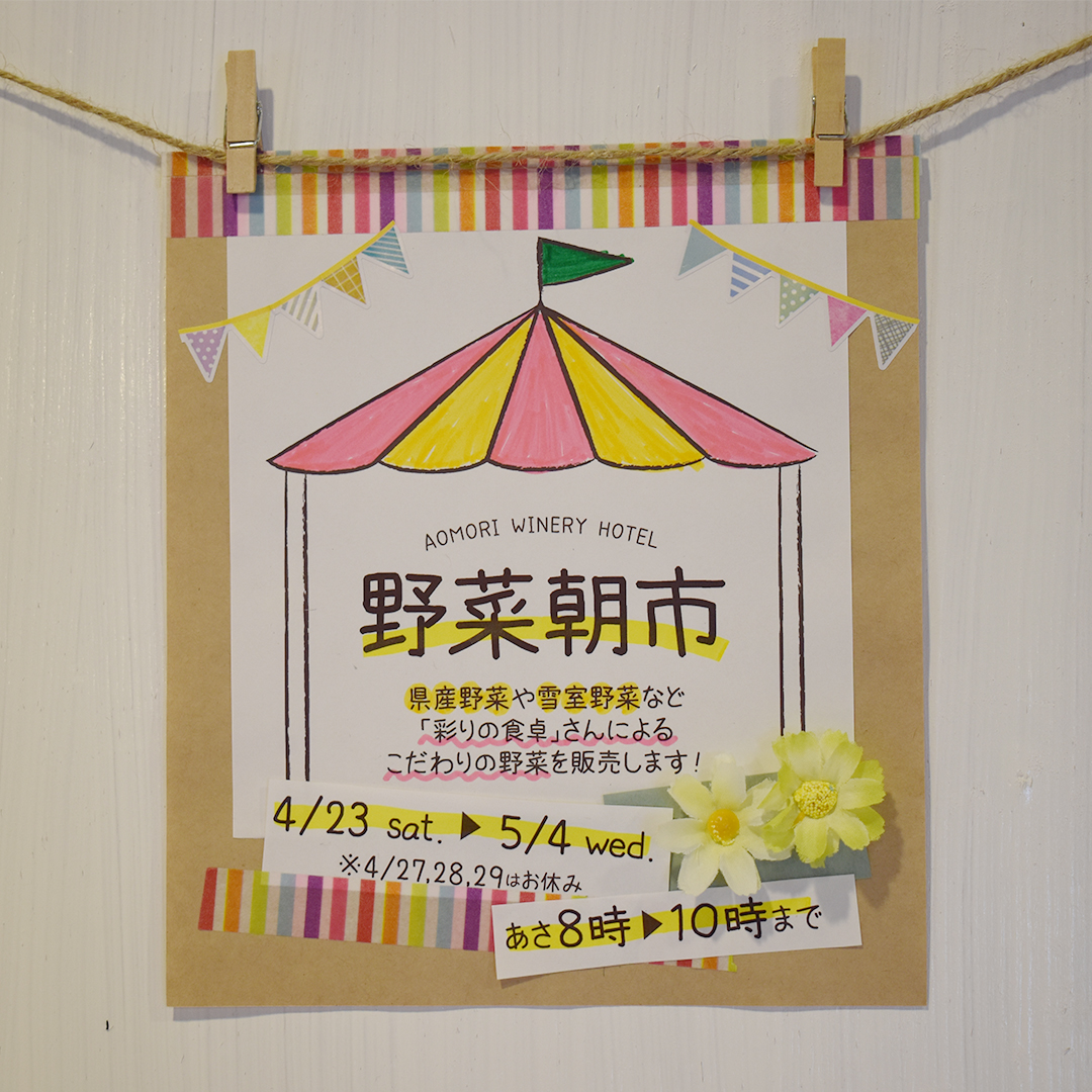 4月23日(土)より「彩りの食卓」さんによる県産野菜や雪室野菜などを、ホテルにて販売いたします!