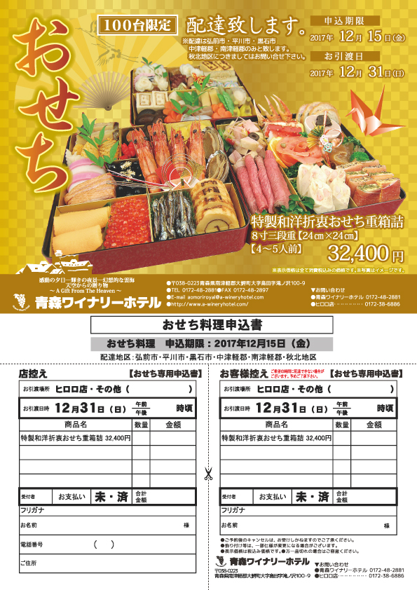 「青森ワイナリーホテル・特製和洋折衷おせち重箱詰」
