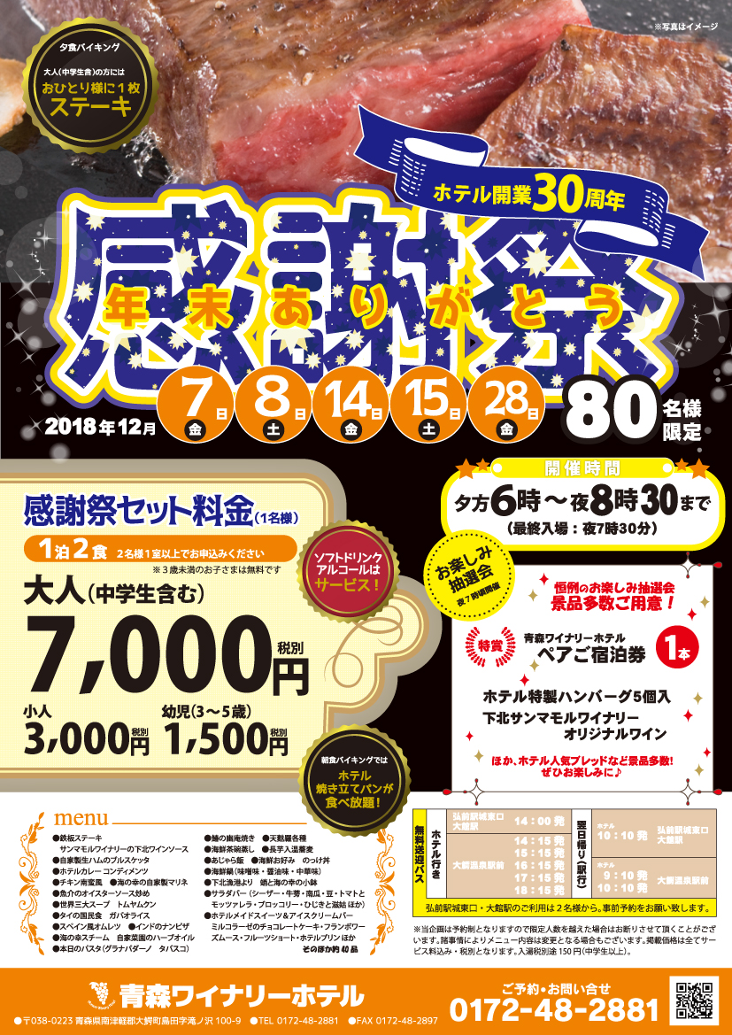 2018.11.15 イベント インフォメーション お知らせ 宿泊プラン
