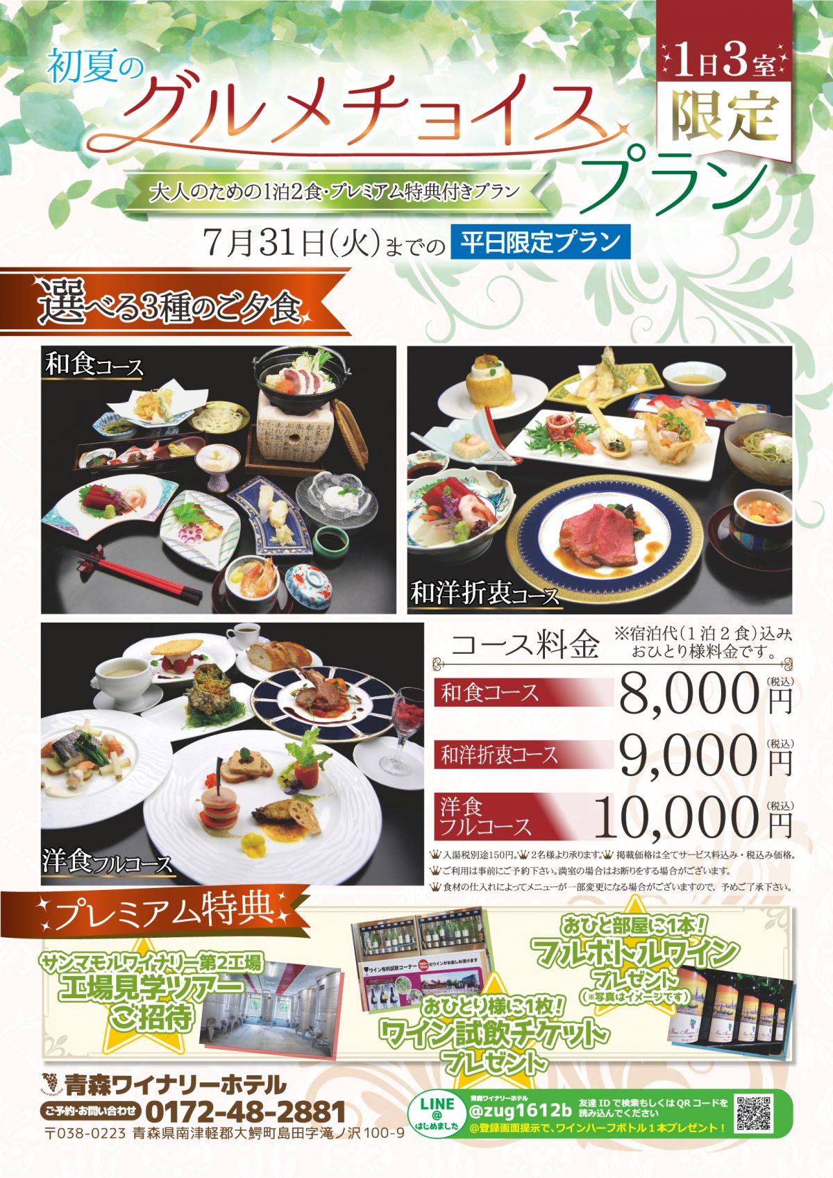 大人のための1泊2食 プレミアム特典付き 1日3室のみの平日限定プランです。 青森ワイナリーホテルといえば食べ放題のバイキングがお馴... 続きを読む